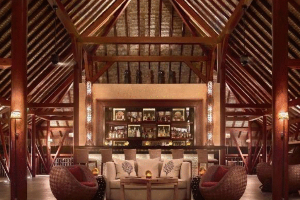 Os interiores valorizam materiais naturais, como madeira e fibras locais, enquanto as cores suaves criam uma atmosfera elegante e acolhedora. Dessa forma, cada espaço convida ao relaxamento e à contemplação. Enquanto isso, a integração entre interior e exterior permite que o hóspede aproveite a paisagem a qualquer momento do dia.
